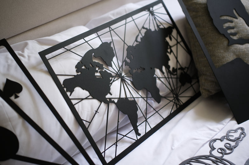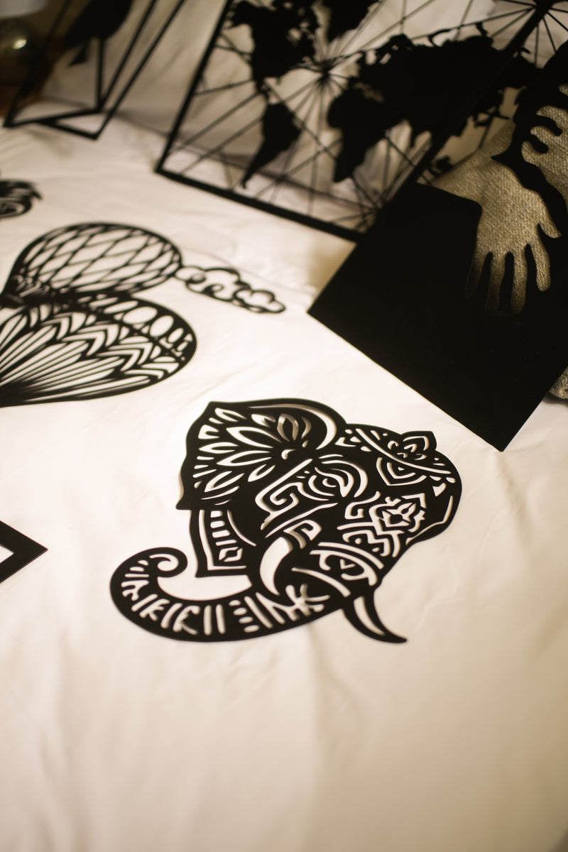 Nuestros cuadros decorativos están hechos en acero (arte en metal) con fabricación de alta precisión. Usamos acero premium y calibres premium para lograr piezas firmes, durables y con presencia; además llevan pintura electrostática para un acabado resistente y uniforme.